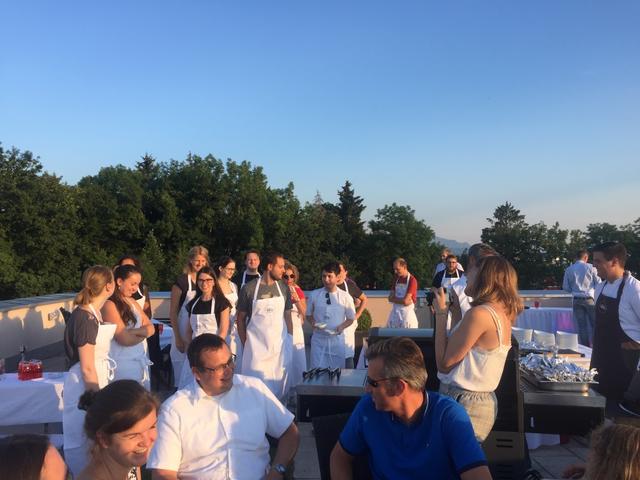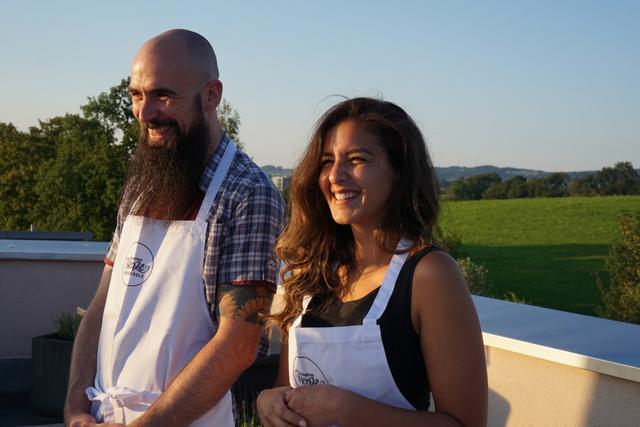 Auf der wunderschönen Dachterrasse mit Ausblick über Kempten konnten wir anschließend bei Sonnenuntergang und einem Glas Wein unser eigens zubereitetes 5-Gänge-Menü genießen und den Sommerabend gemütlich ausklingen lassen.
