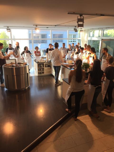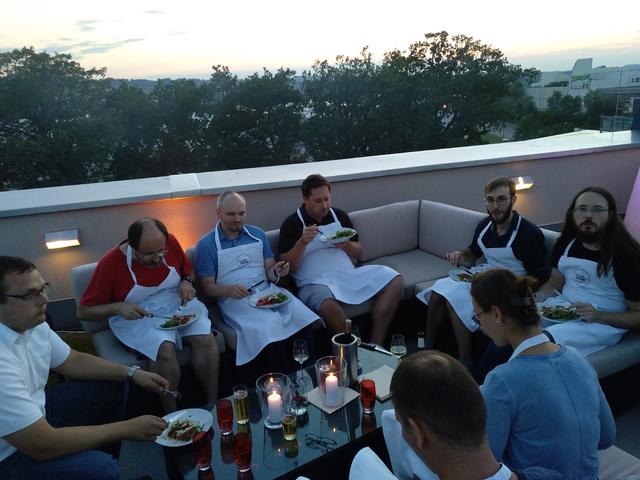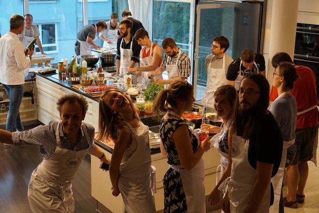 Auch beim Freizeitprogramm stand der Aspekt der Teamarbeit im Fokus und so ging es am Abend für uns nach Kempten zu einem Grill-Kochkurs bei Starkoch Christian Henze. Nach kurzer Einweisung vom Profi haben wir selbst zu Messer und Kochlöffel gegriffen, um zu beweisen, dass wir nicht nur gut Redaktionssysteme bauen können, sondern auch vor dem Grill eine gute Figur machen. Dabei kam der Spaß natürlich nicht zu kurz.