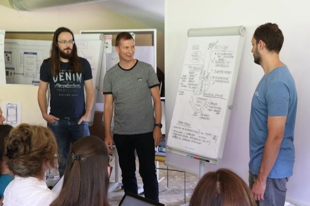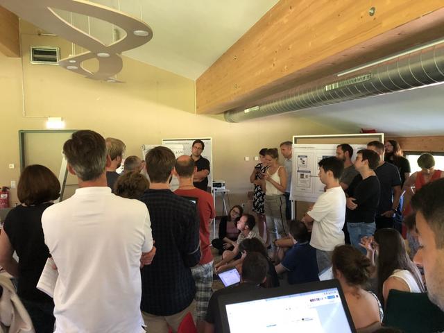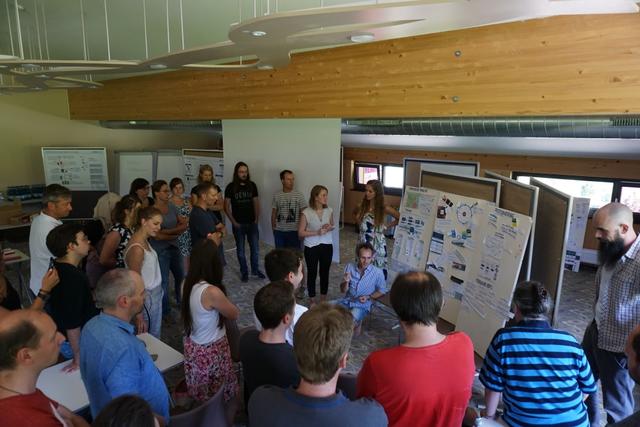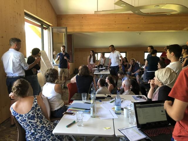 Nach weiterer Gruppenarbeiten stellten am nächsten Tag schließlich alle ihre erarbeiteten Ergebnisse vor. Durch die Vollständigkeit des Teams während der Klausur konnte bei diesen Präsentationen das Feedback sowie Input für die Weiterentwicklung von allen Fachrichtungen einfließen. Dadurch wurde der Aspekt der interdisziplinären Gruppenarbeiten nochmals gestärkt.