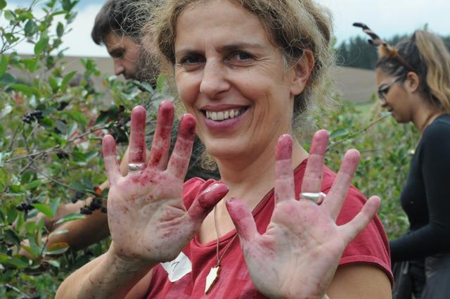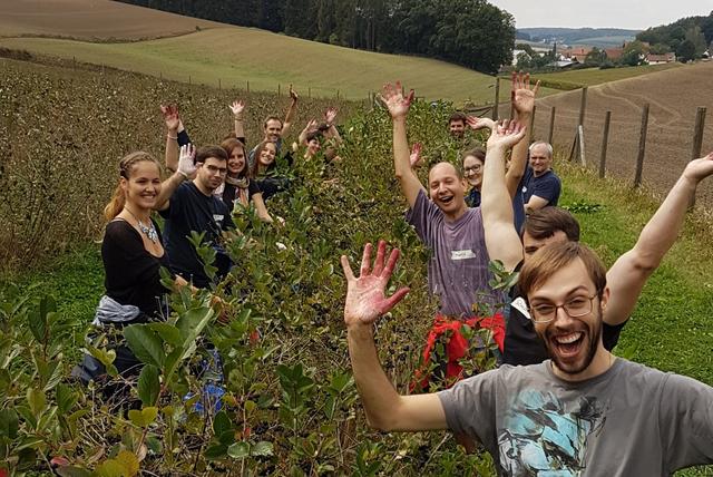 Nachdem die Aronia Beeren erfolgreich geerntet waren, versuchten wir fast vergebens die dunkelroten Hände wieder sauber zu waschen. Unsere Brotzeit im Anschluss hatten wir uns wirklich verdient.