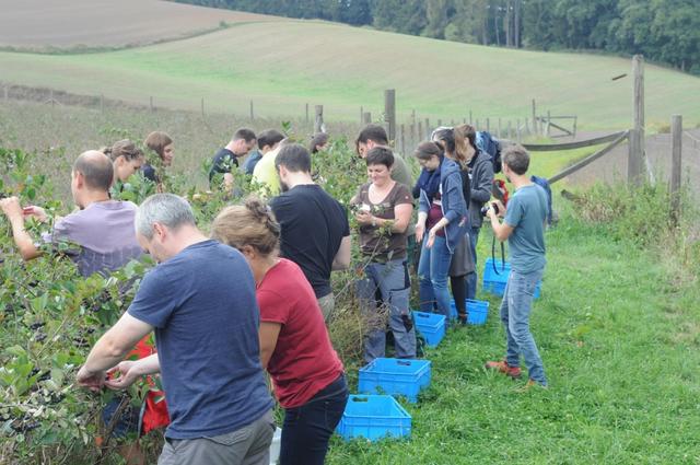 Das Verkosten der Beere war natürlich die erste Aufgabe, bevor direkt Kübel und Boxen verteilt wurden. Vertraut gemacht mit der Technik packten dann gleich alle an. Zwischen kleinen Wettrennen und Beerenklau verloren wir aber nicht unser gemeinsames Ziel aus den Augen.