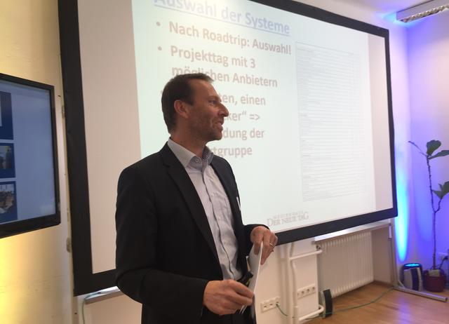 Nach der Kaffeepause zeigte Thomas Maul, Geschäftsführer von DER NEUE TAG in Weiden in der Oberpfalz, wie sein Medienhaus versucht, in einem fundamentalen Transformationsprozess dem Anspruch einer Regionalzeitung im Jahr 2015 gerecht zu werden. Auch machte er anschaulich, wie das gemeinsame Entwicklungsprojekt zusammen mit Gogol Publishing abläuft und Stück für Stück verwirklicht wird.