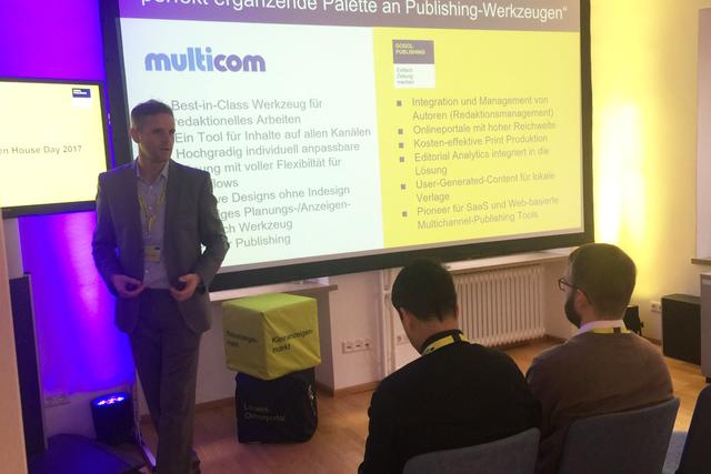 Mit dem Schulterschluss von Gogol Publishing und multicom stehen Verlagen nun noch mehr Werkzeuge für Medienprodukte in Print und Digital zur Verfügung. Eines davon, das multicom AppPublishing (WebReader und App), wurde im letzten Vortrag des Tages vom Leiter Digital, Martin Hoffmeister, vorgestellt. multicom hat diese in einer Entwicklungspartnerschaft mit der FUNKE Mediengruppe für deren Tageszeitungen entwickelt. Die Gäste hatten in diesem Vortrag die Möglichkeit, alle Funktionen des AppPublishing live im System nachzuverfolgen.