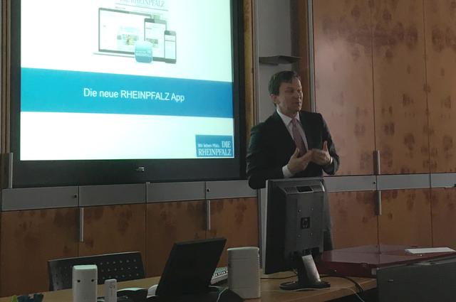 Jeder Zeitungsverlag kämpft mit rückläufigen Printauflagen. Medienmacher stellen sich seit Jahren die Frage, wie die Abonnenten von ePaper-Ausgaben langfristig gebunden werden können und wie diese Abos zu rentablen Produkten werden. Denn die heranwachsende Generation informiert sich digital. Publishing muss für die Zukunft neu gedacht werden, da sich das Leseverhalten der Mediennutzer enorm gewandelt hat. Informationen in mundgerechten Happen erhalten, die schnell zu erfassen sind, mögen die digital natives besonders gern. Wie die Rheinpfalz sich dieser Herausforderung stellt, erklärte Simon Gauß, Leiter Digitale Angebote. Neben der Entwicklung der digitalen Strategie gehört auch das Produktmanagement in seinen Verantwortungsbereich. „Die digitalen Produkte müssen eine hervorragende Qualität und Bedienbarkeit gewährleisten. Dafür sorgen bei uns Produktmanager, Daten- und Marktanalysten, sowie UX(User Experience)- und UI(User Interface)-Spezialisten im operativen Tagesgeschäft“, so Gauß.