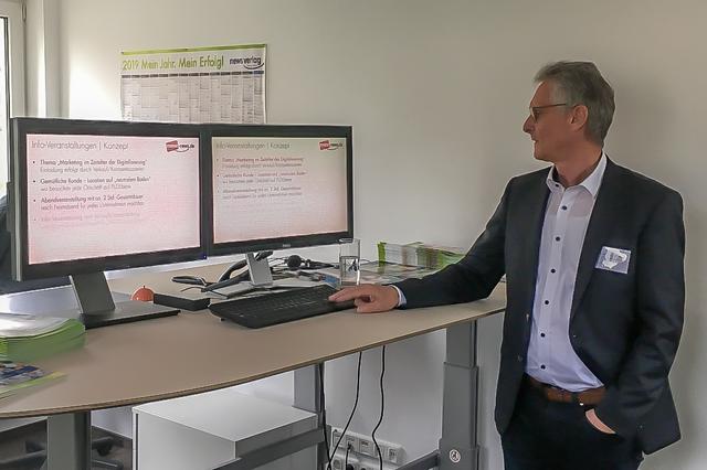 Geschäftsführer Charles Henri Rüttiger stellte zunächst die verschiedenen Geschäftsbereiche des Verlags vor, ehe sein Bruder, Geschäftsführer Stefan Rüttiger dann die beeindruckende Entwicklung des News Verlags vor allem im Online-Bereich aufzeigte. Er wies dabei darauf hin, dass der momentane Online-Anteil am Gesamtumsatz von 11% für Sie keineswegs das Ende der Fahnenstange bedeute und alles darauf hindeutet, dass dieser Wert noch enorm gesteigert werden kann.