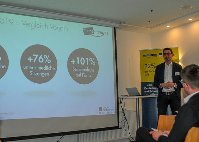 André Rüttiger zeigte in seiner Funktion als Leiter Neue Medien im Verlag dann, mit welchen Mitteln sie den Elf-Prozent-Wert erreichen. So zeigte er zum Einen, dass vor allem Native Ads in Form von Jahres-Online-Paketen sehr gut bei den Werbekunden ankommen und auch Wirkung erzielen, weshalb ein sehr hoher Prozentsatz nach Ablauf des Jahres erneut abschließt. Basis für den großen Erfolg ist dabei die große Reichweite, die mit dem Onlineportal von Gogol erreicht werden kann.